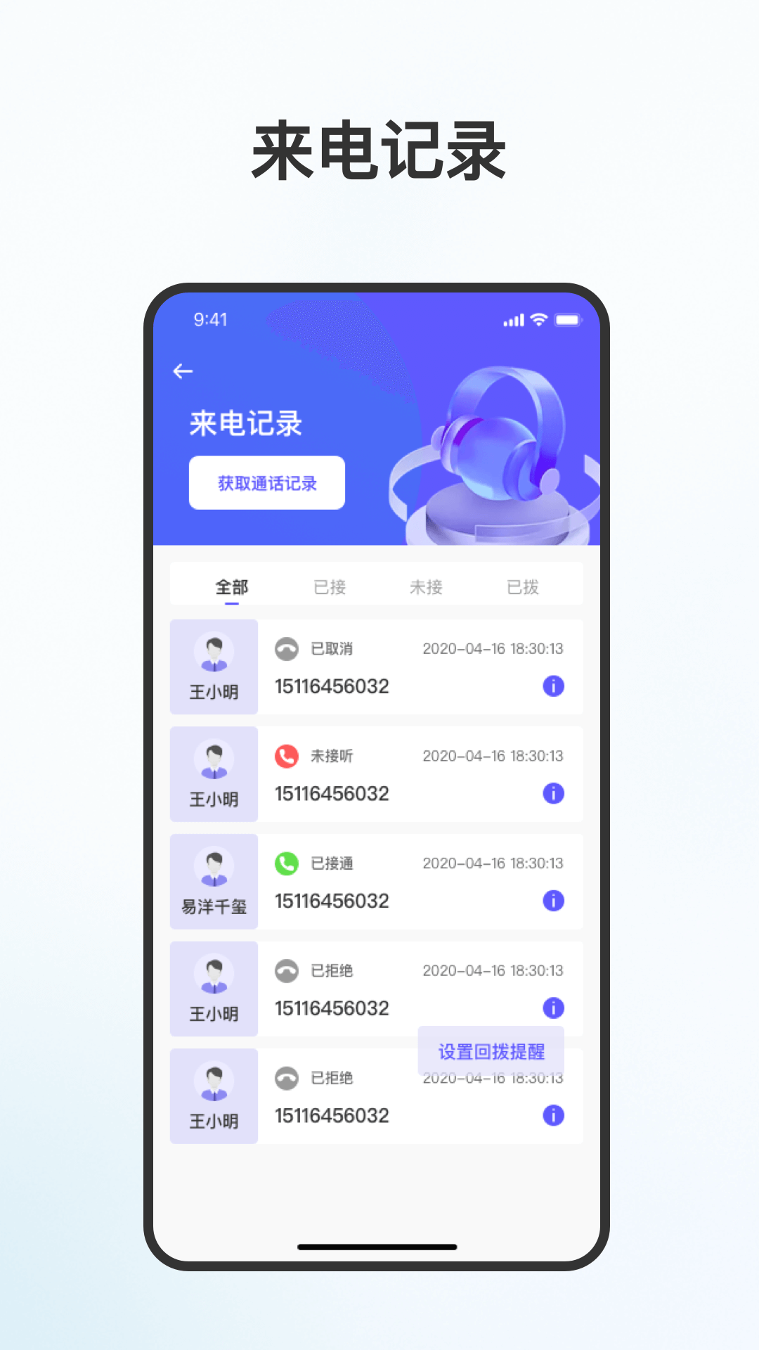 可以一键获取手机的通话记录,用户可以进行查询,还可以获取通讯录联系人信息