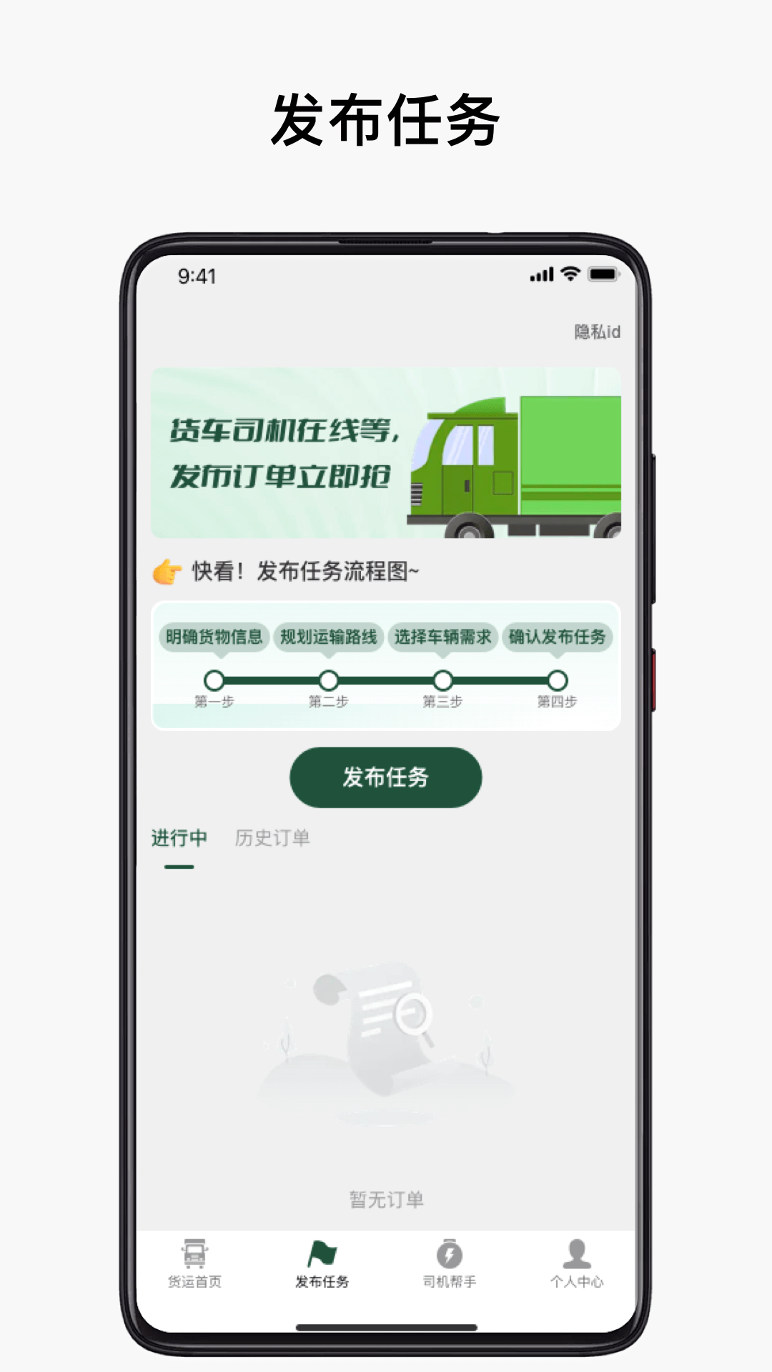 专为货车司机打造的综合性服务平台,集接单管理、任务发布、行车辅助于一体,助力司机高效完成运输任务。通过“准备资料-上传-审核”三步快速完成资质认证,清晰遵循“明确货物-规划路线-选车-发布”流程发布任务。 行车助手工具:内置限行提醒(支持多地尾号查询)、指南针、手电筒等实用工具,